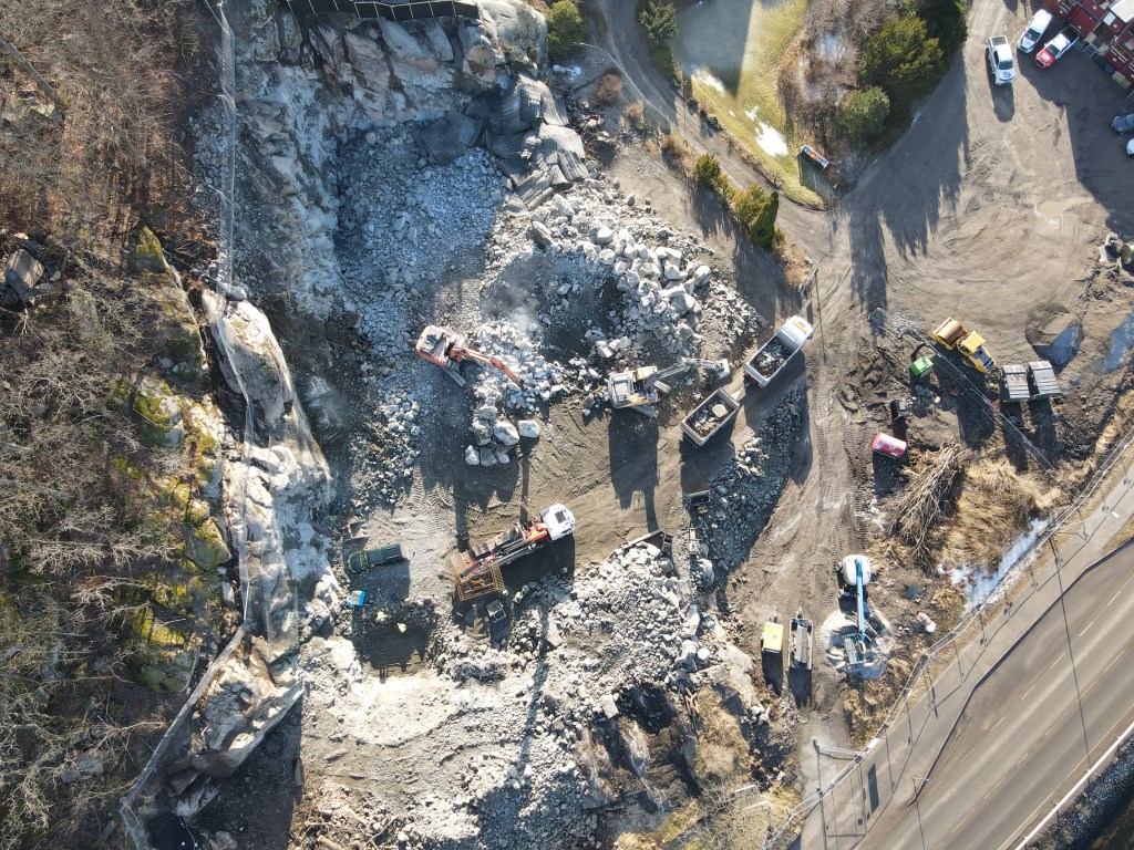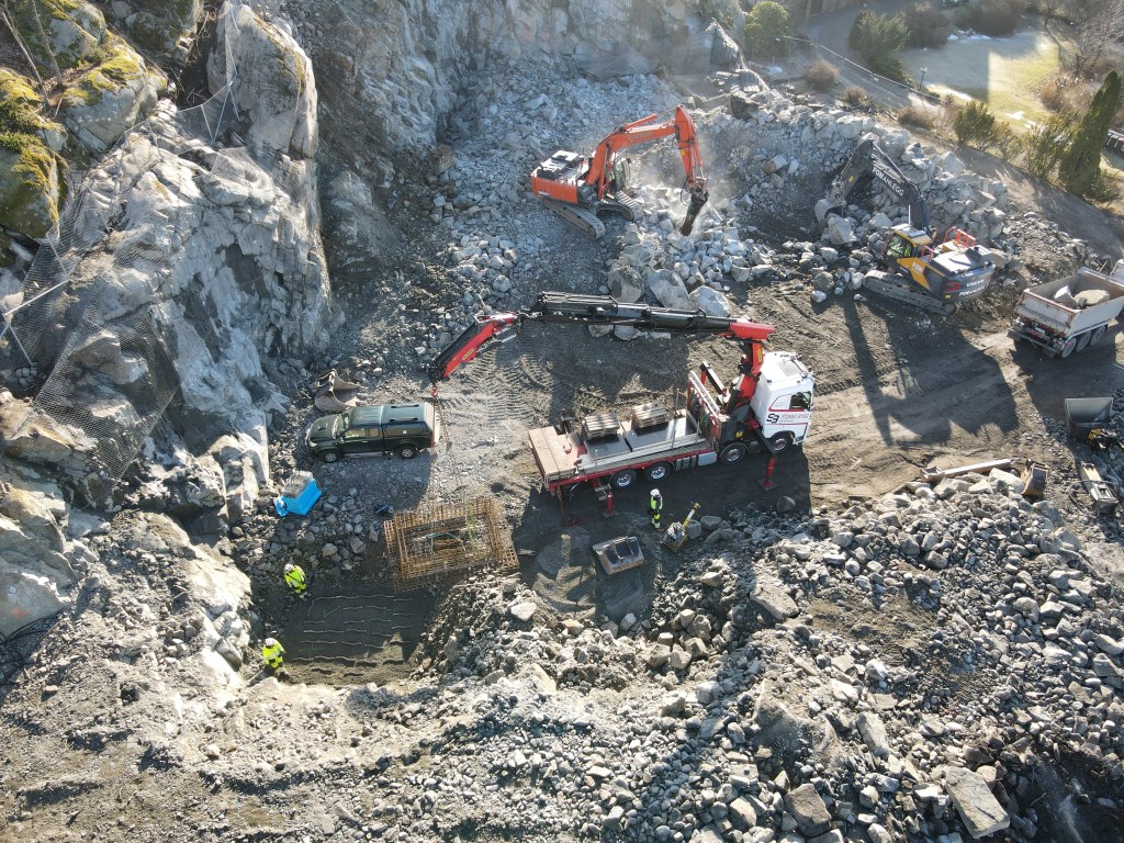 Fjeldvig, sprengningsarbeider i gang